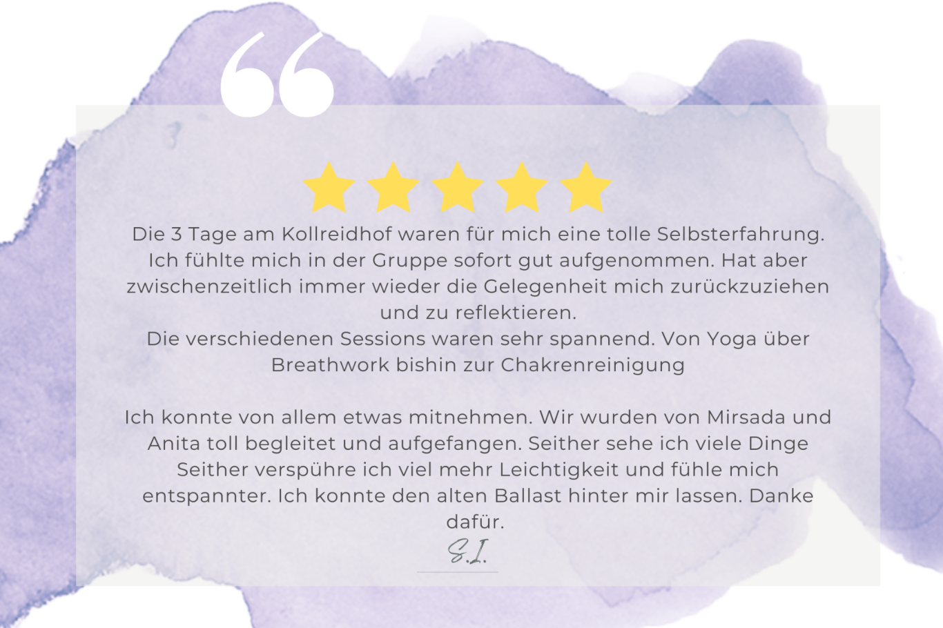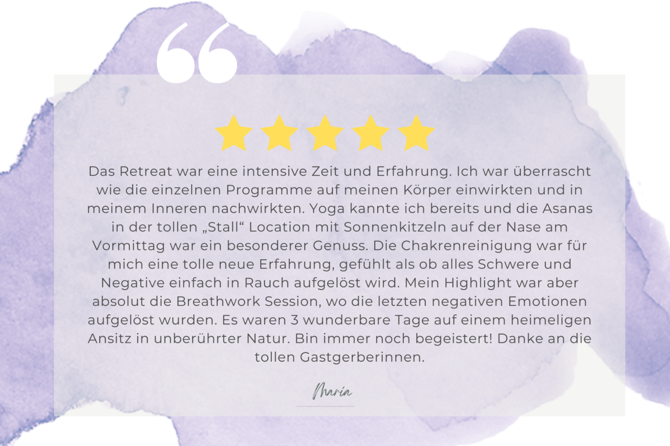 Sichere dir deinen Platz vom 1. bis 3. Mai 2026! Achtsamkeit wird hier großgeschrieben, während wir gemeinsam loslassen, uns befreien und die Flamme deines wahren ICHs entfalten. Ganz gleich, ob du alleine, mit einem Freund oder einer Freundin, im Mama-Tochter-Duo, in einer Gruppe oder als Paar kommst – bei uns sind alle herzlich willkommen!